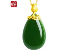 印象眸 金镶玉和田玉吊坠足金玫瑰花镶碧玉水滴吊坠