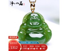 净心石 和田玉碧玉吊坠 18K金镶玉佛公玉坠油润弥勒佛玉坠女款吊坠附证书